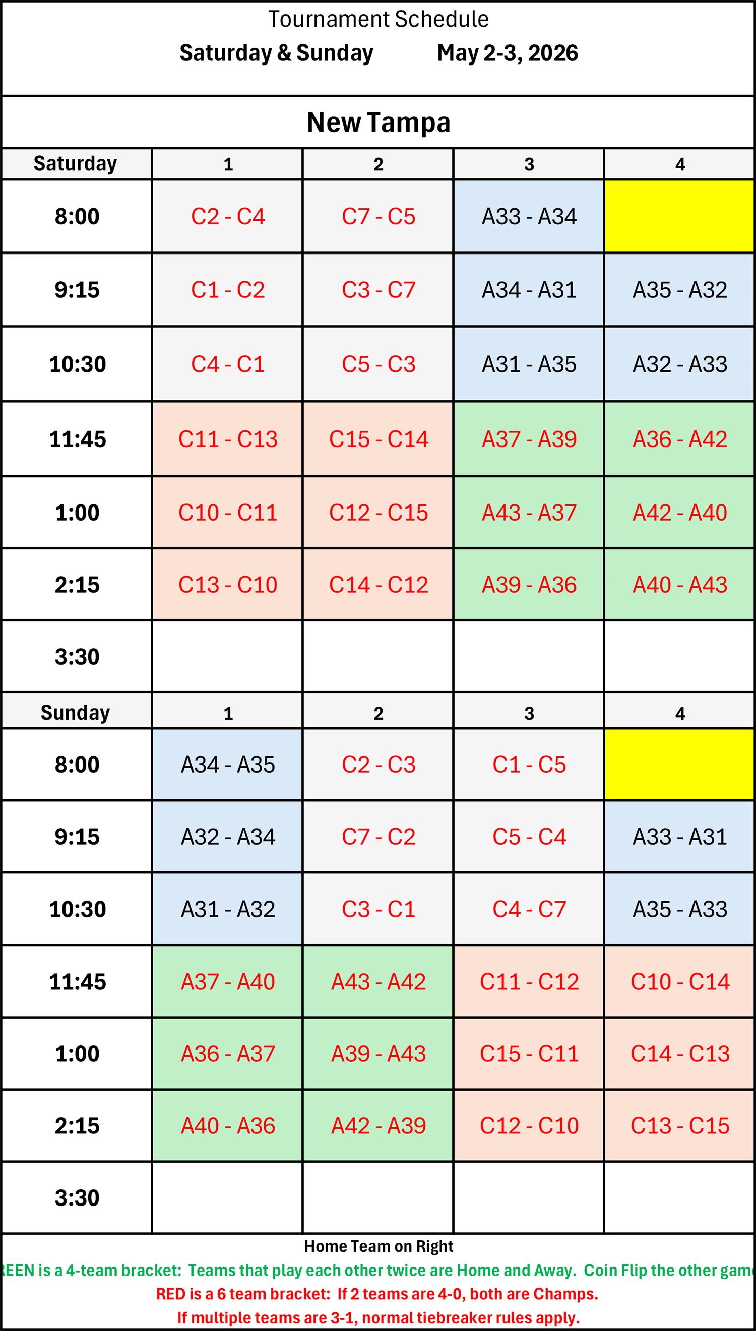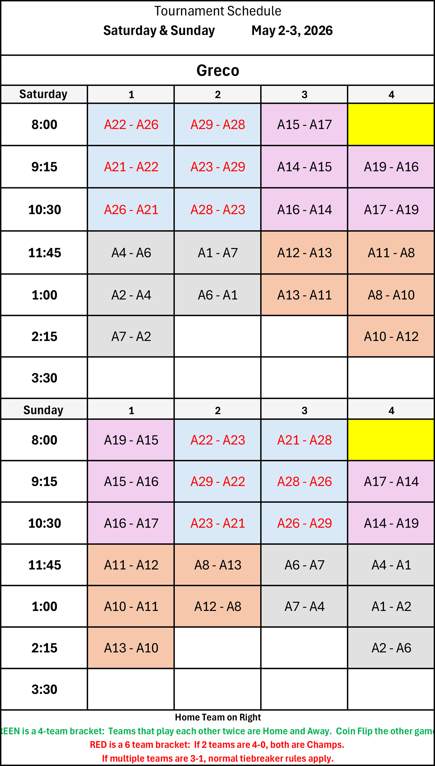 | 9:15 | A36 - A42 | A40 - A39 | A34 - A35 | A33 - A31 |