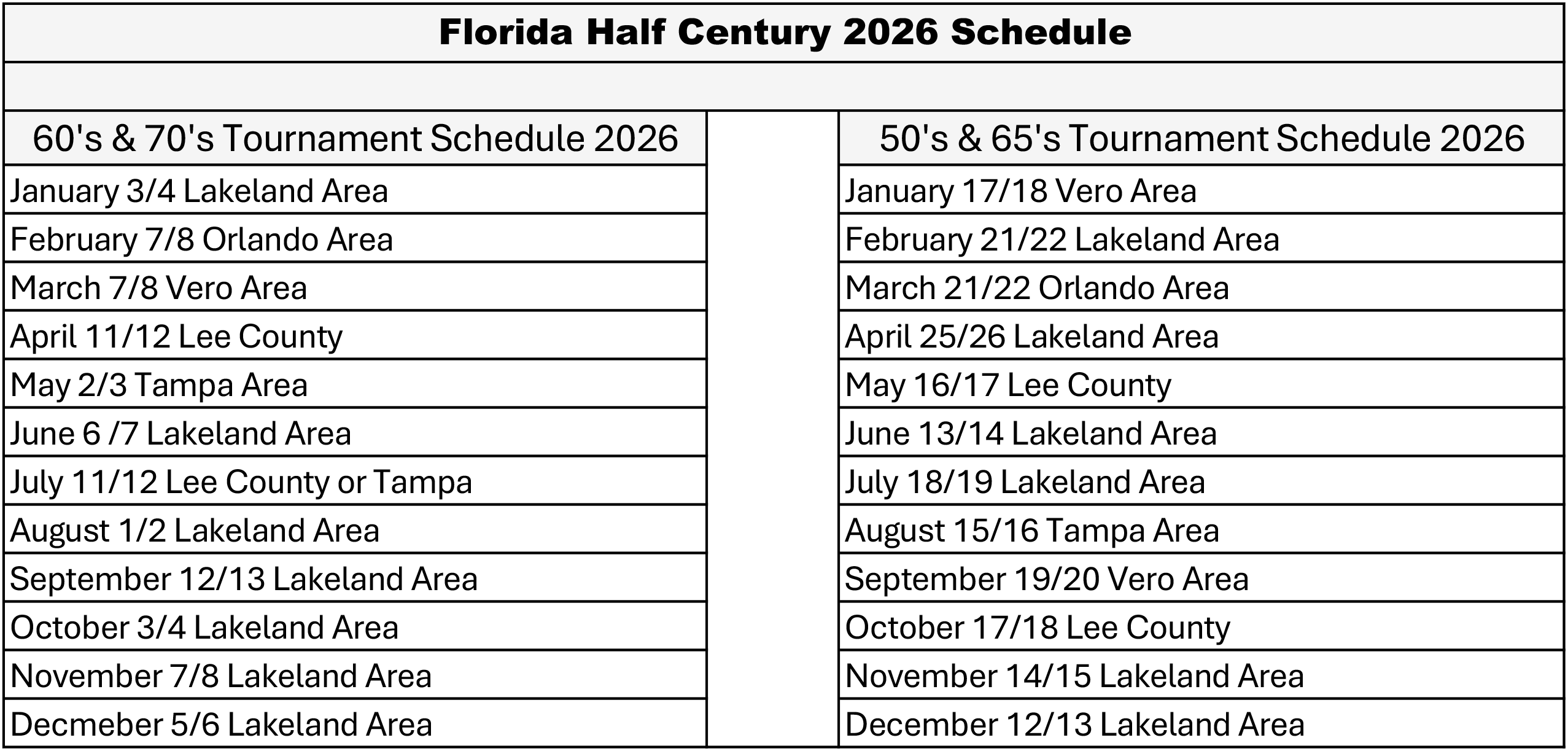 Click HERE to download our 2026 50's & 65's and 60's & 70's Tournament Schedules