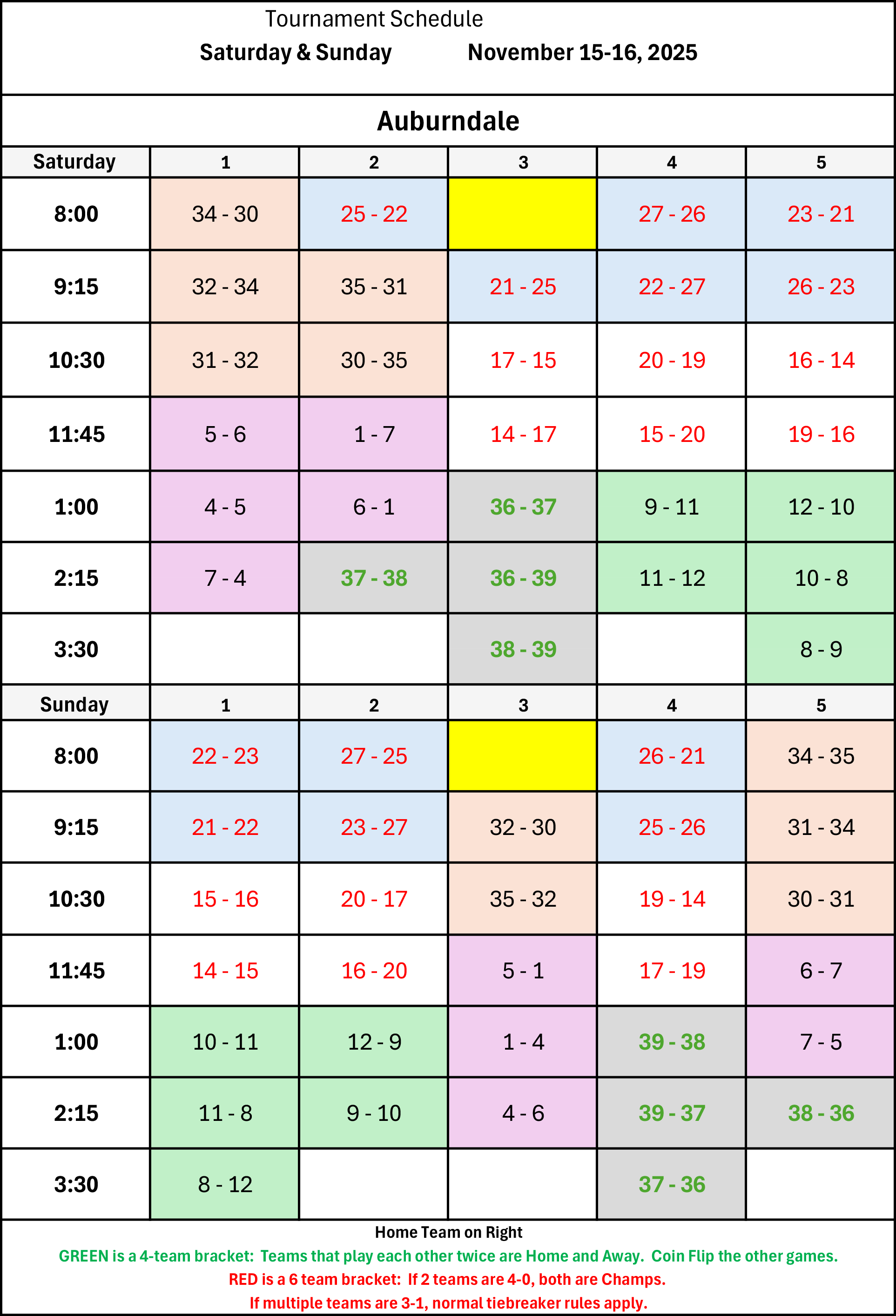 | 9:15 | 7 - 4 | 39 - 38 | 37 - 36 | 11 - 8 | 9 - 10 |