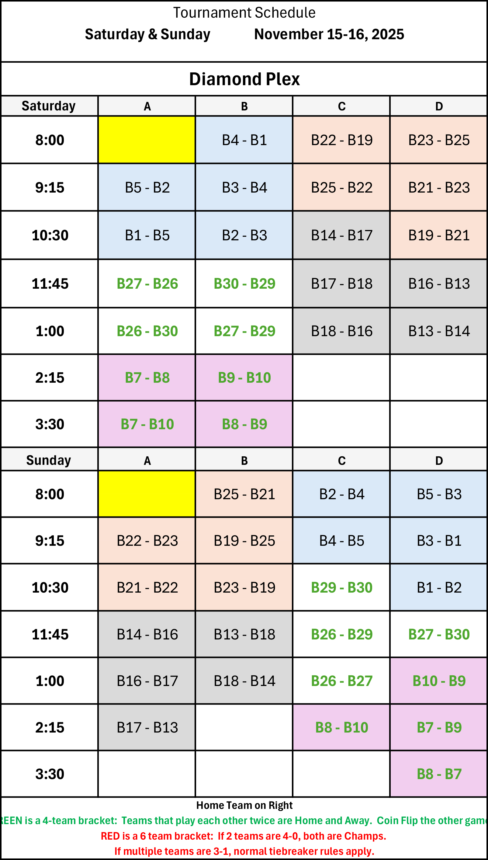 | 9:15 | B16 - B13 | B17 - B18 | B26 - B27 | B29 - B30 |